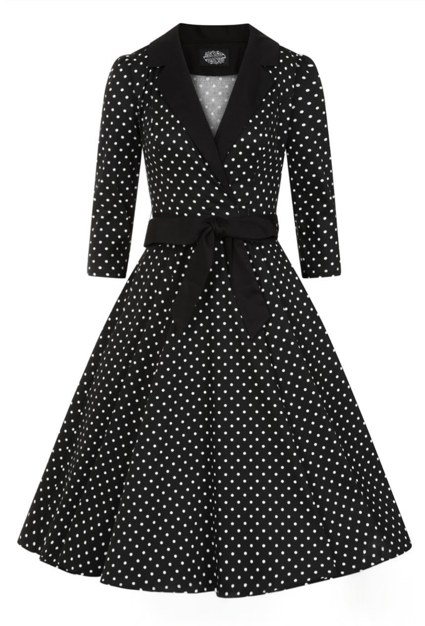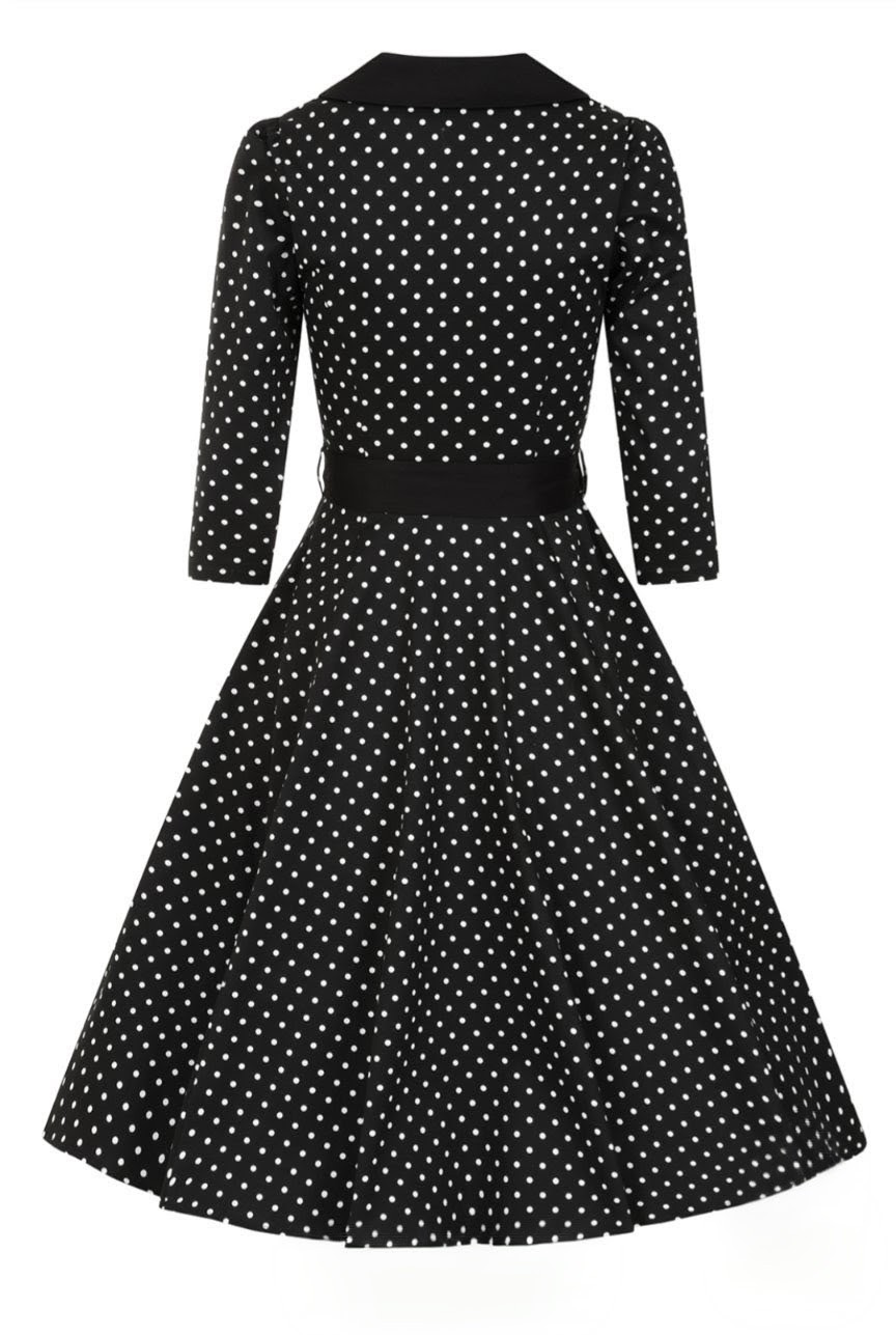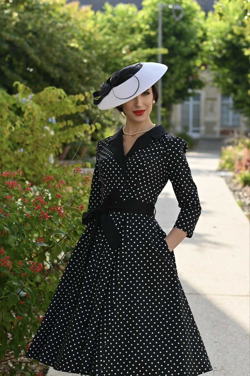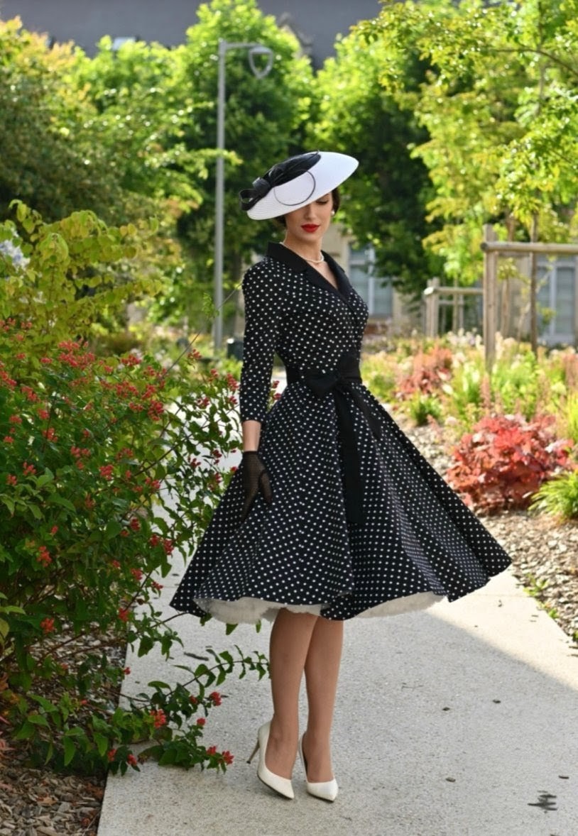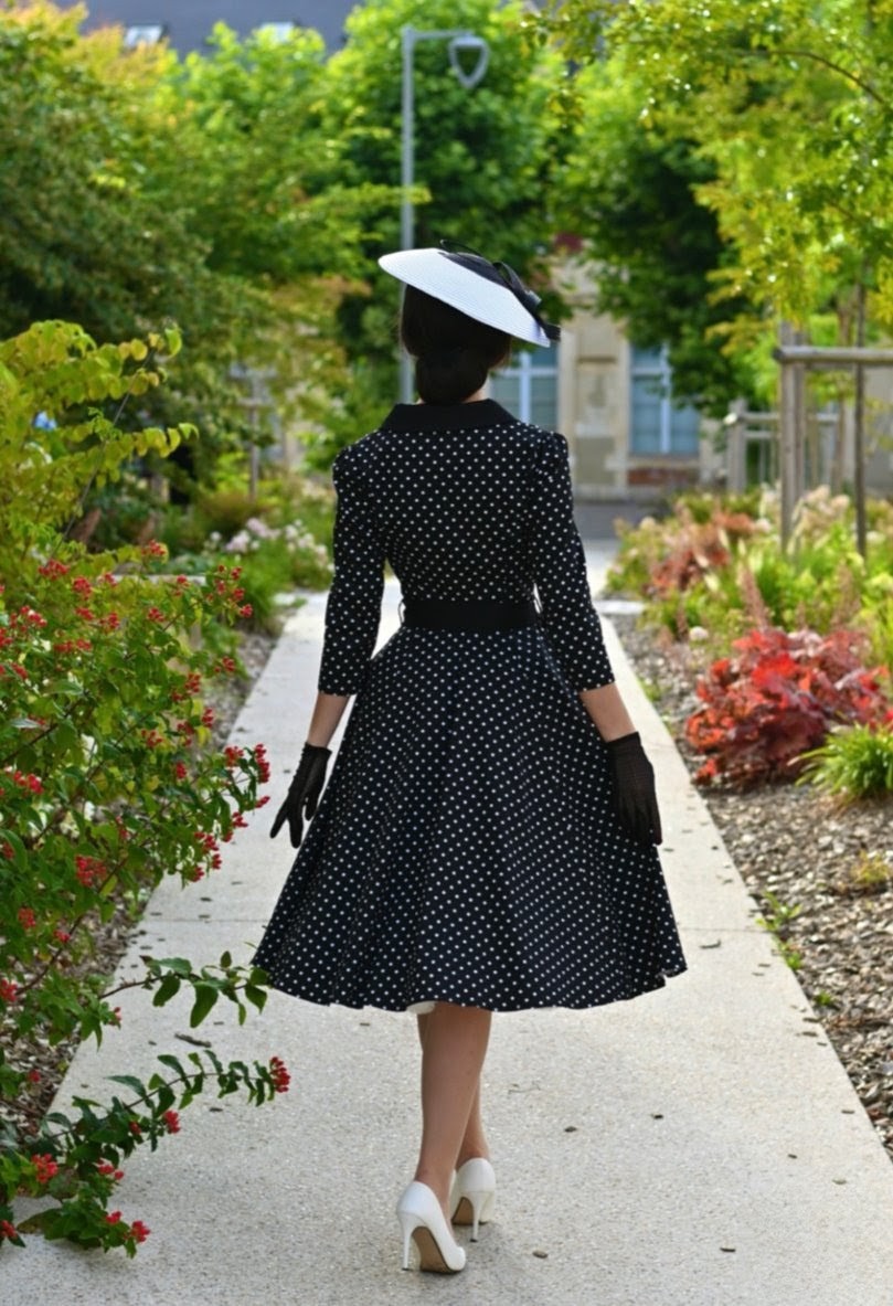 Step back in time with our charming 1950s-inspired black and white Cora Polka Dot Swing Dress, perfect for channelling vintage elegance with a playful twist.