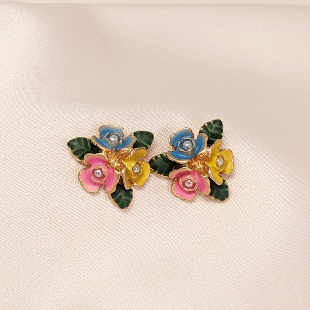 Make a statement with these unique, hand-painted vintage flower stud earrings.