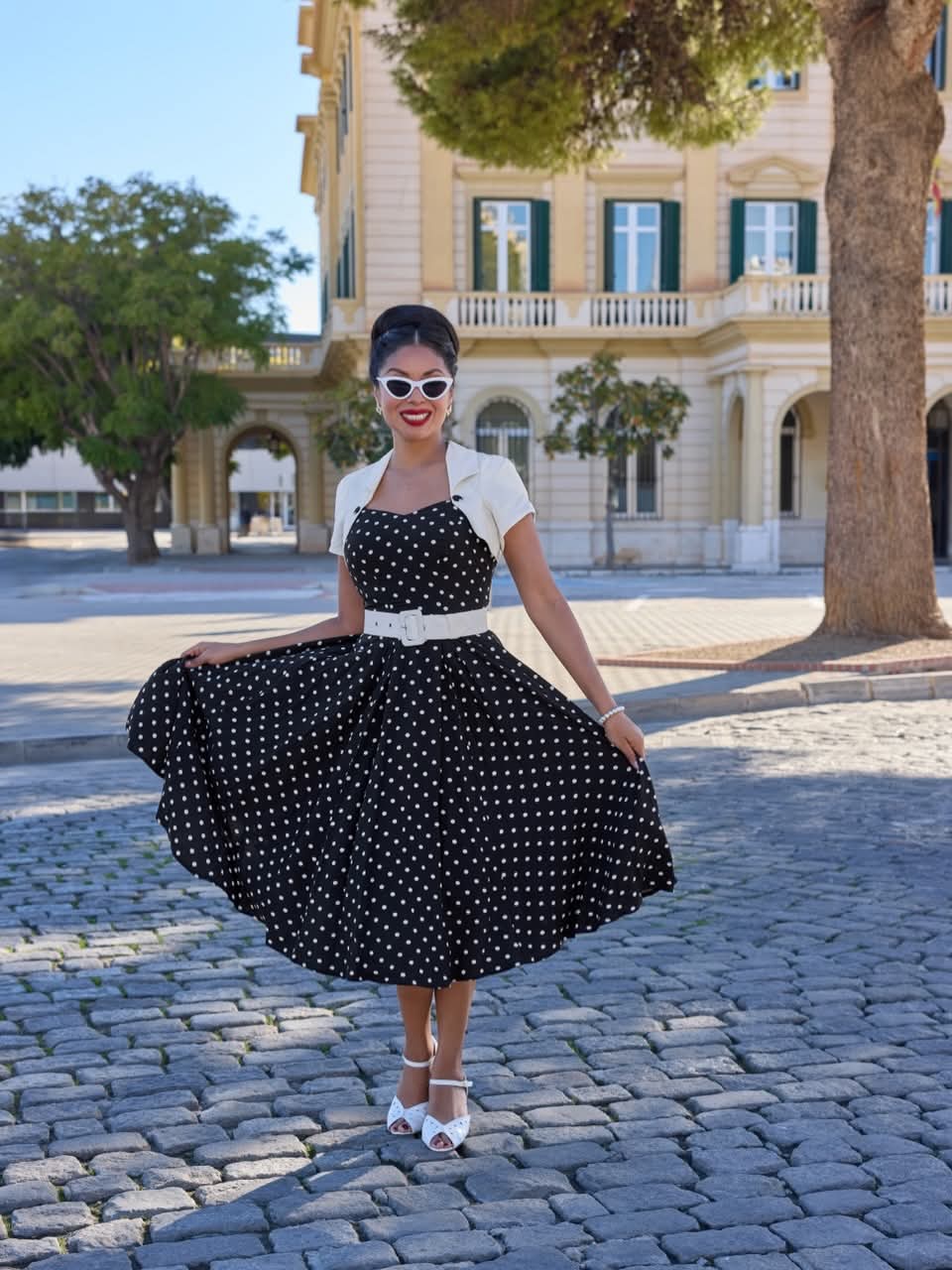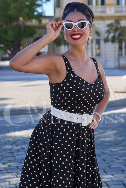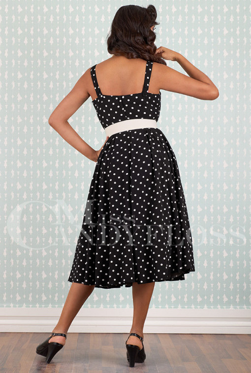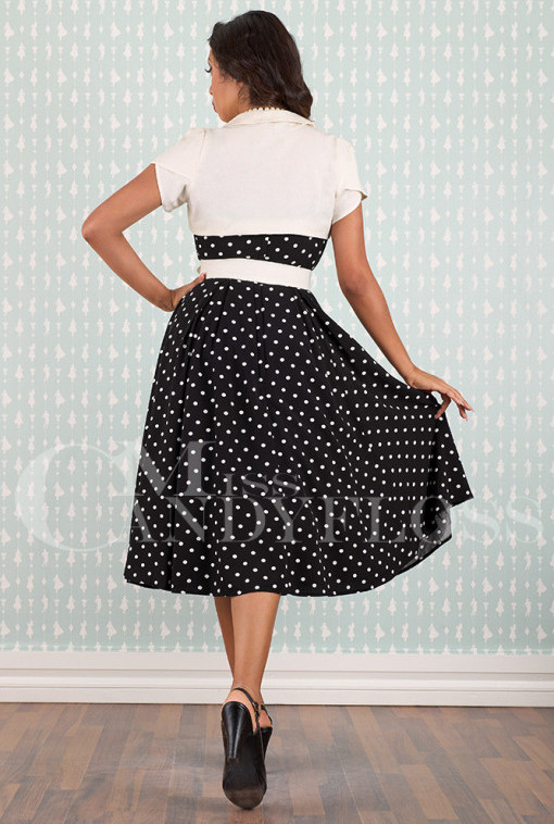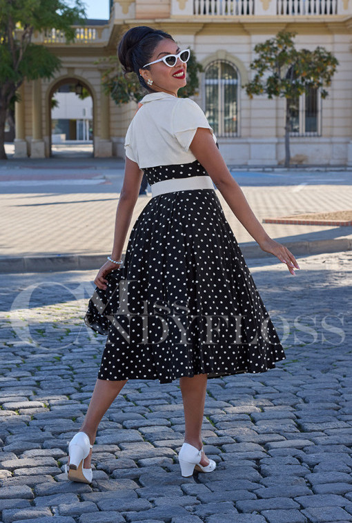 Step back in time with this 1950s-inspired swing skirt dress in classic black and white.