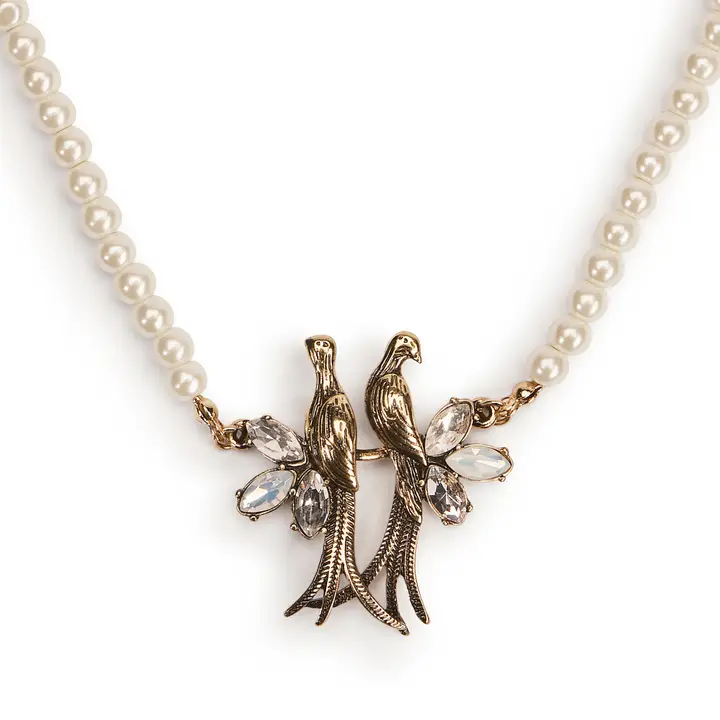 Pearl Love Birds Necklace: Pearl Choker Necklace